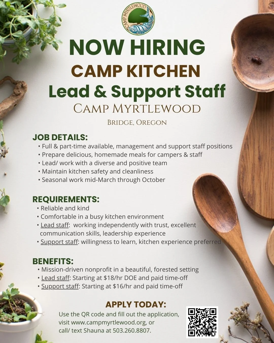 NOW HIRING Camp Kitchen Lead and Support Staff